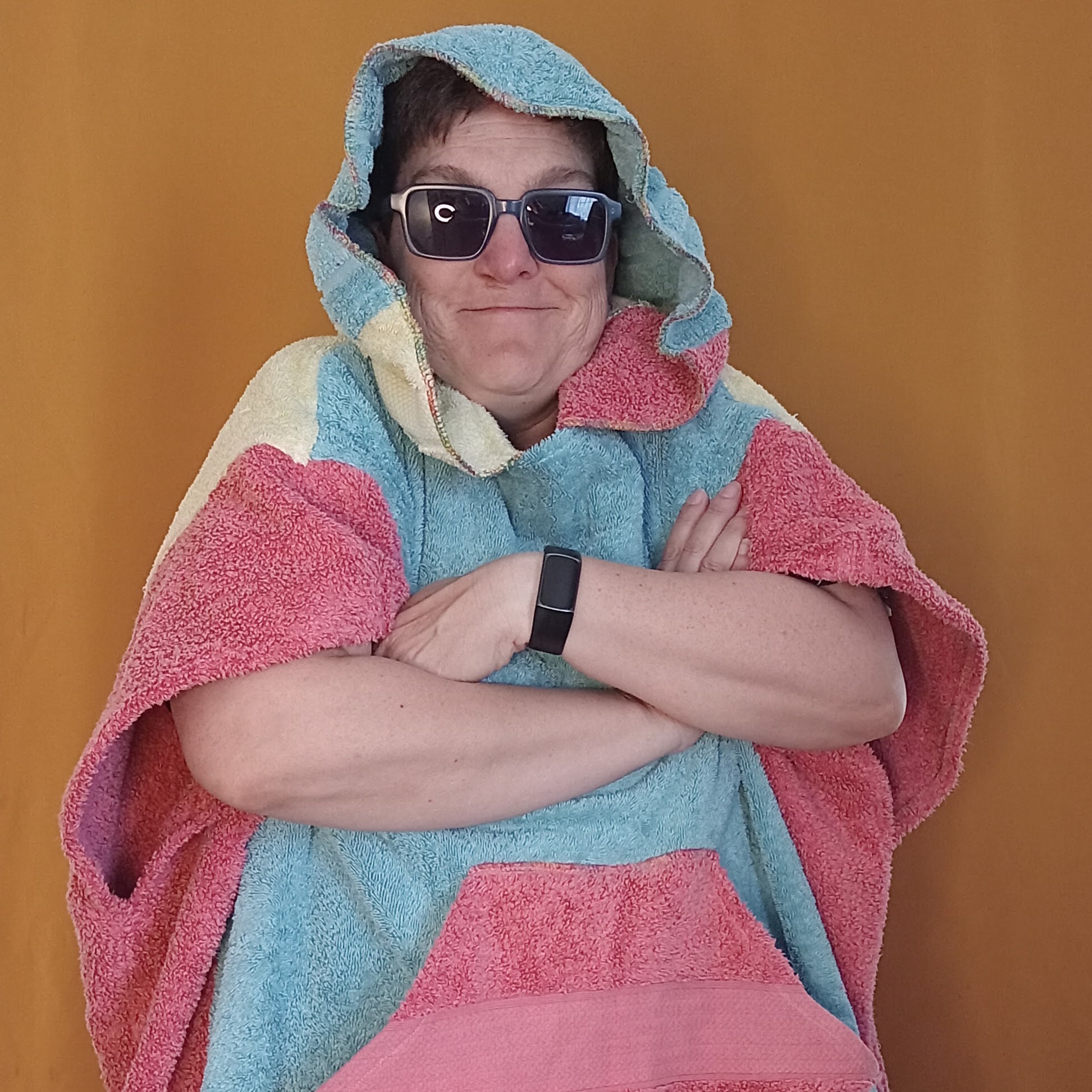 There is one new poncho that I’m still a bit emotionally attached to. It’s giving strong Battenberg cake vibes — soft colours, a bit playful, very cute. That one is $60, mostly because I need convincing to part with it 😅